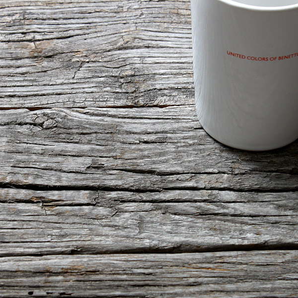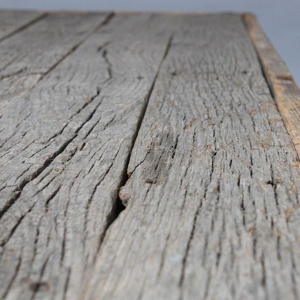 数十年の年月を経てシルバーグレイに風化した貫禄のヴィンテージランバーです。逆光でシルバーグレイに鈍く光ります。