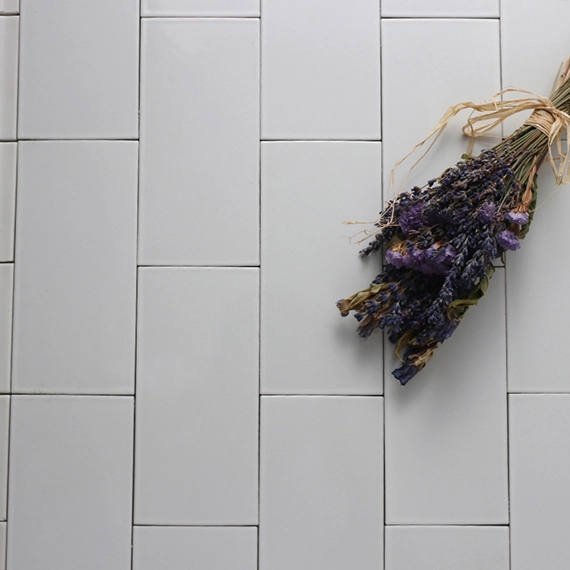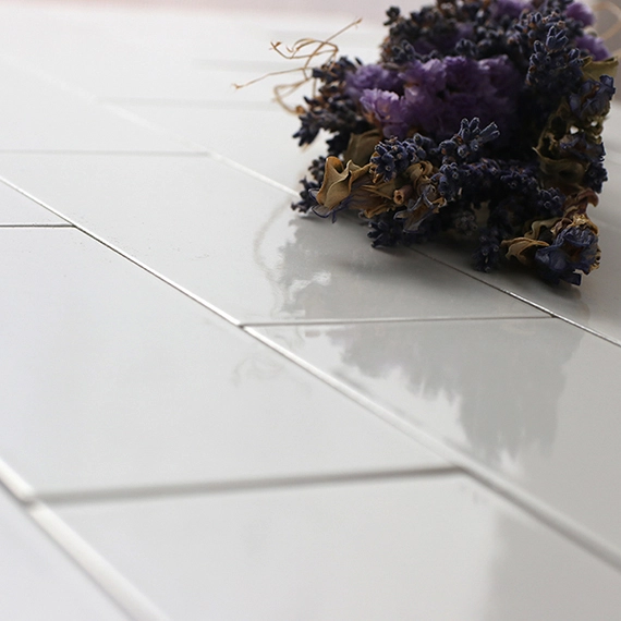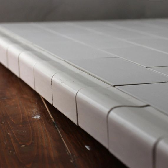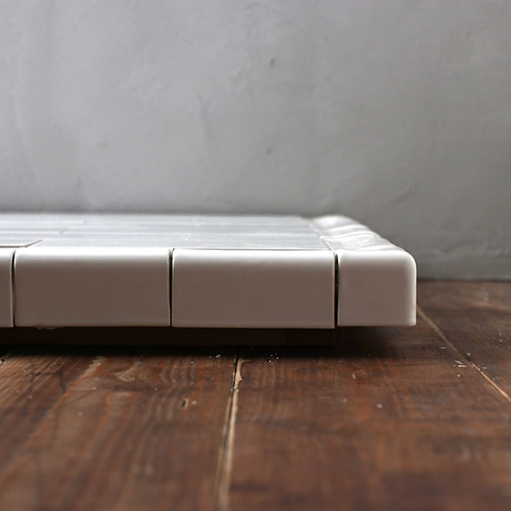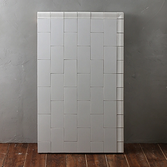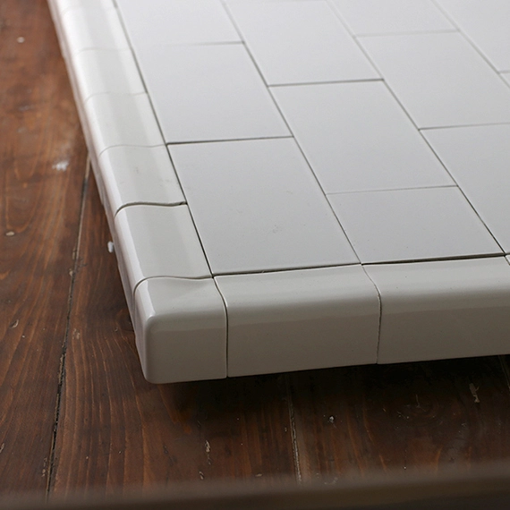 1コーナーのみ側面も仕上げてあります。側面やコーナーを使った撮影ができます。タイル1枚のサイズは190mm×90mmで目地はありません。